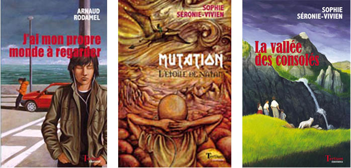 Tertium Éditions souhaite éditer le texte de “Patatrac & Comment ça s’appelle” de Éric Herbette, dont j’ai réalisé l’affiche du spectacle. Mireille Veyssière me contacte donc pour que je lui transmette l’illustration originale pour la couverture. Le contact pris, elle me sollicite pour réaliser une ligne graphique de jaquettes, destinées à recouvrir ses romans Jeunesse déjà édités mais qui ne se vendent pas assez. Elle voulait qu’ils soient plus attrayants, visibles, cohérents, et contemporains.