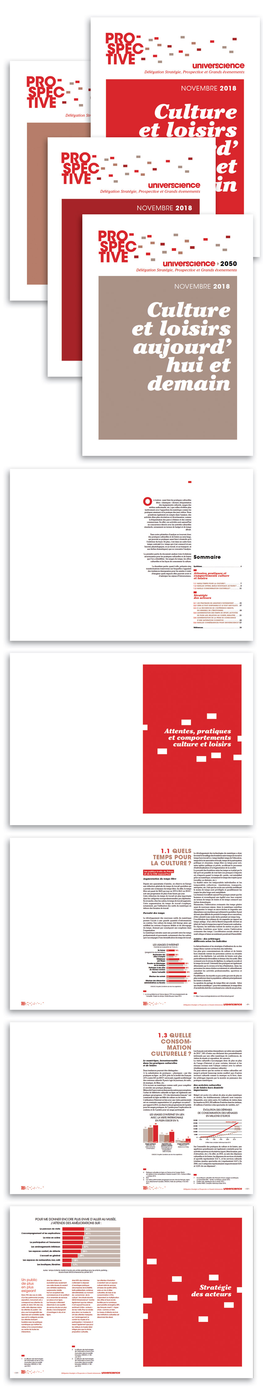 La délégation Stratégie, prospectives et grands événements de Universience souhaitait concevoir une maquette pour l’élaboration de ses dossiers de prospective, en particulier pour l’objectif 2050. Il s’agit alors de réaliser un gabarit issu de l’identité visuelle, déclinable à volonté en interne, imprimé en reprographie ou diffusé aussi en pdf.