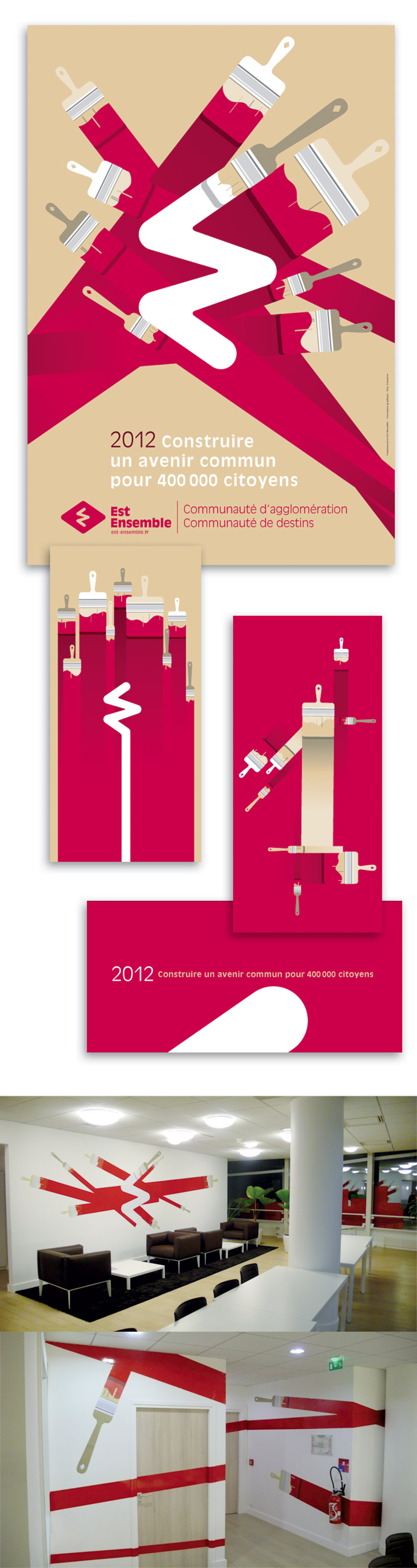 Après sa mise en place, la Communauté d’agglomération Est Ensemble passe, en 2012, à la phase active de ses compétences. La campagne des vœux est alors l’occasion de communiquer sur cette nouvelle institution en affirmant son identité visuelle.