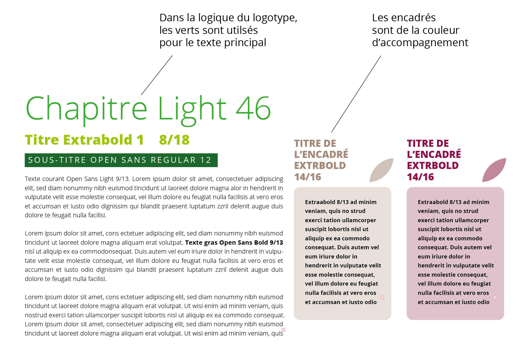 Les différentes tonalités de verts illustrent la diversité des membres et acteurs, ainsi que la transformation des biodéchets jusqu’à la matière sèche incarnée par la feuille.