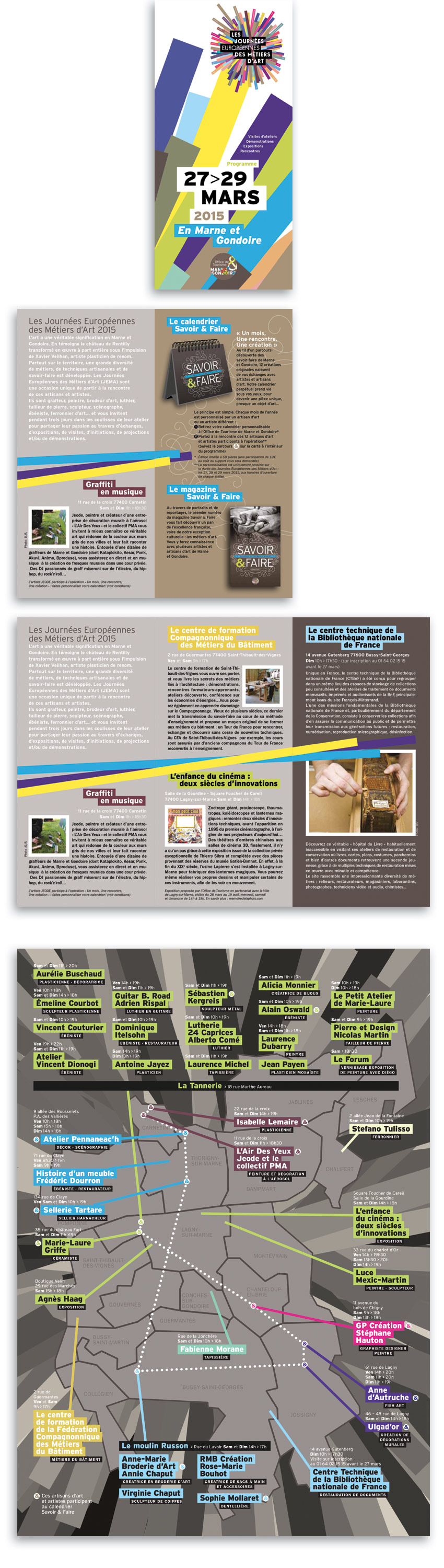 1. L’Office de Tourisme de Marne et Godnoire est très satisfait de cette parution qui met parfaitement en valeur la filière des métiers d’art et artistes sur notre territoire. Cette brochure est d’ailleurs très plébiscitée par le grand public. Tony Gonçalves a parfaitement compris notre demande. Cette brochure est réussie !
